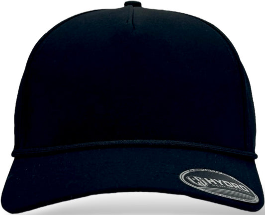 5 panel Hydro Cap: Black - Black/Black rope Snapback