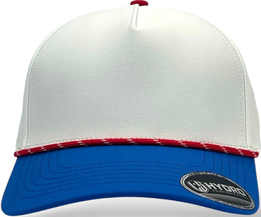 5 Panel Hydro Cap: RED/WHITE/BLUE with Rope Snapback