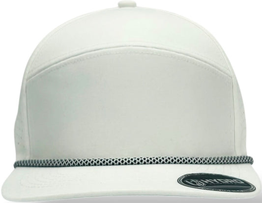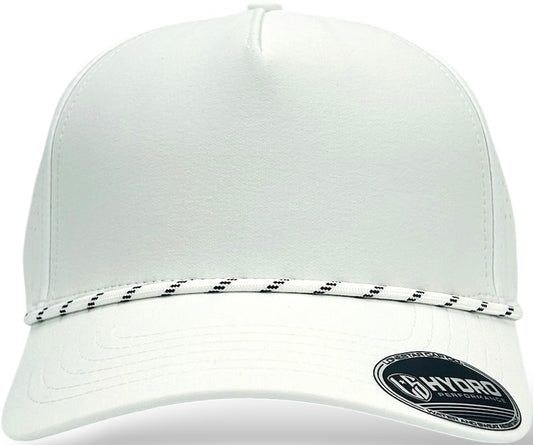 5 Panel Hydro Cap: White - Black/White Rope Snapback