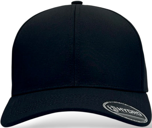 5 panel Hydro Cap: Black - Black/Black rope Snapback