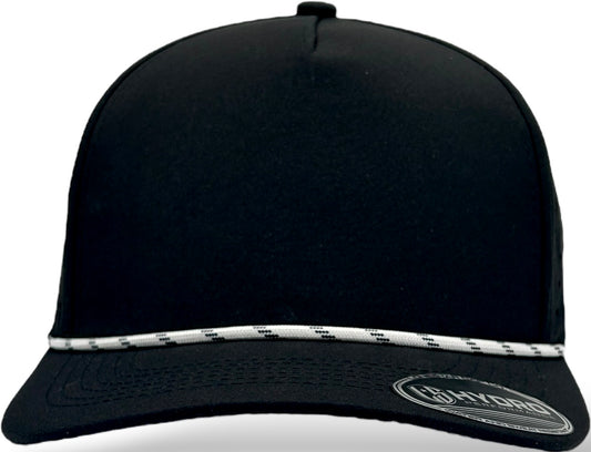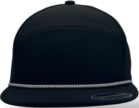 5 panel Hydro Cap: Black - White/Black rope Snapback