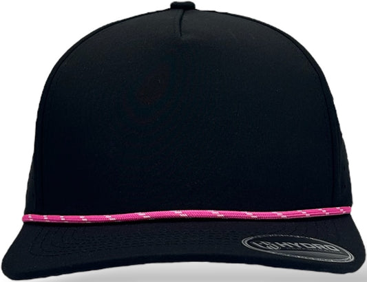 5 Panel Black Rope Hat with Neon Pink/White Rope Snapback