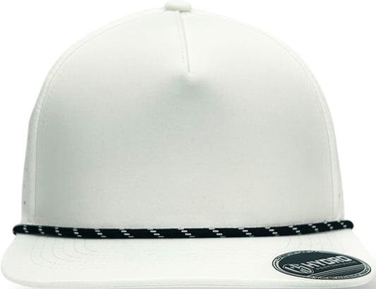 5 Panel Hydro Cap: White - Black/White Rope Snapback