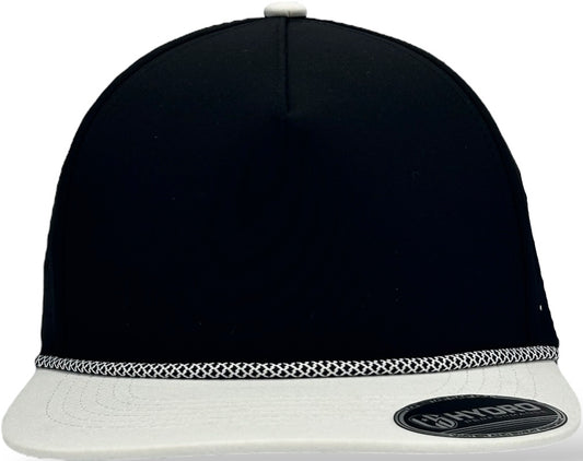 5 Panel Hydro Cap: Black/White Bill with Black/White Rope Snapback