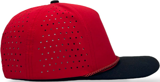 5 Panel Hydro Cap: Red/Black Bill with Red/white Rope Snapback