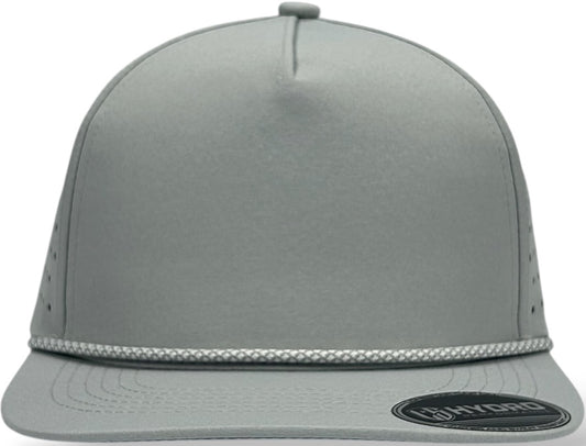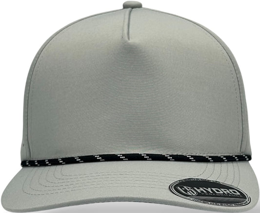 5 Panel Hydro Cap: Light Gray - Black/White Rope Snapback