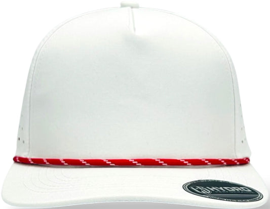 5 Panel Hydro Cap: White - Red/White Rope Snapback