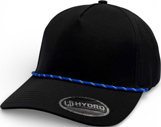 5 Panel Sapphire Blue Rope Hat with black Rope Snapback