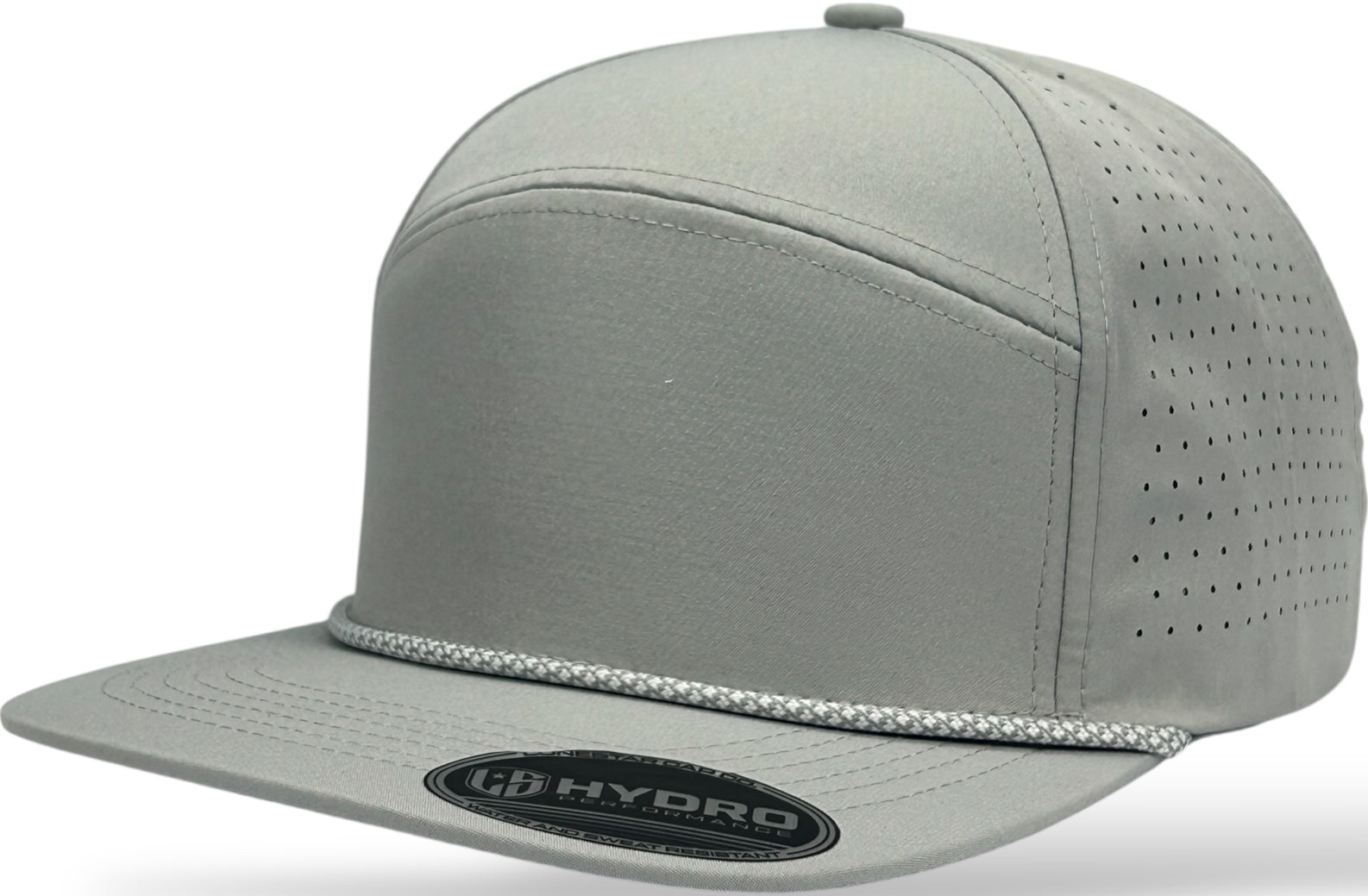 6 Panel Flat Bill - Light Grey with White/Light Grey Diamond Rope